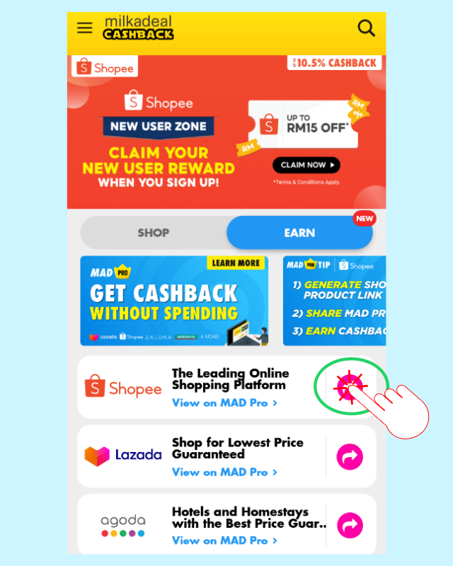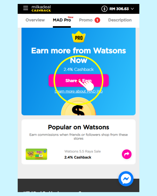 MAD Pro is a feature on MilkADeal where you can get cashback from other people’s shopping by just recommending them where to spend or what to buy.